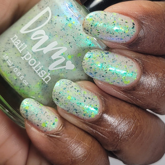 Twinkling Tornado - White Crelly - Green Glitter Nail Polish - Shimmer Nail Polish - Stormy Siblings Collection